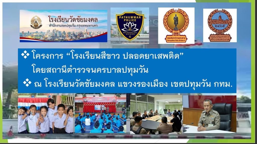 ขับเคลื่อนโครงการโรงเรียนสีขาว ซึ่งเป็น 1 ใน 16 โครงการสำคัญเพื่อป้องกันและปราบปรามยาเสพติด