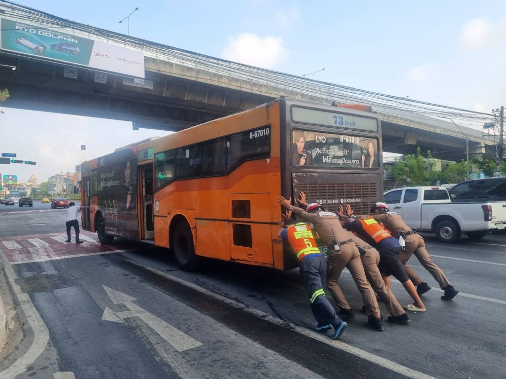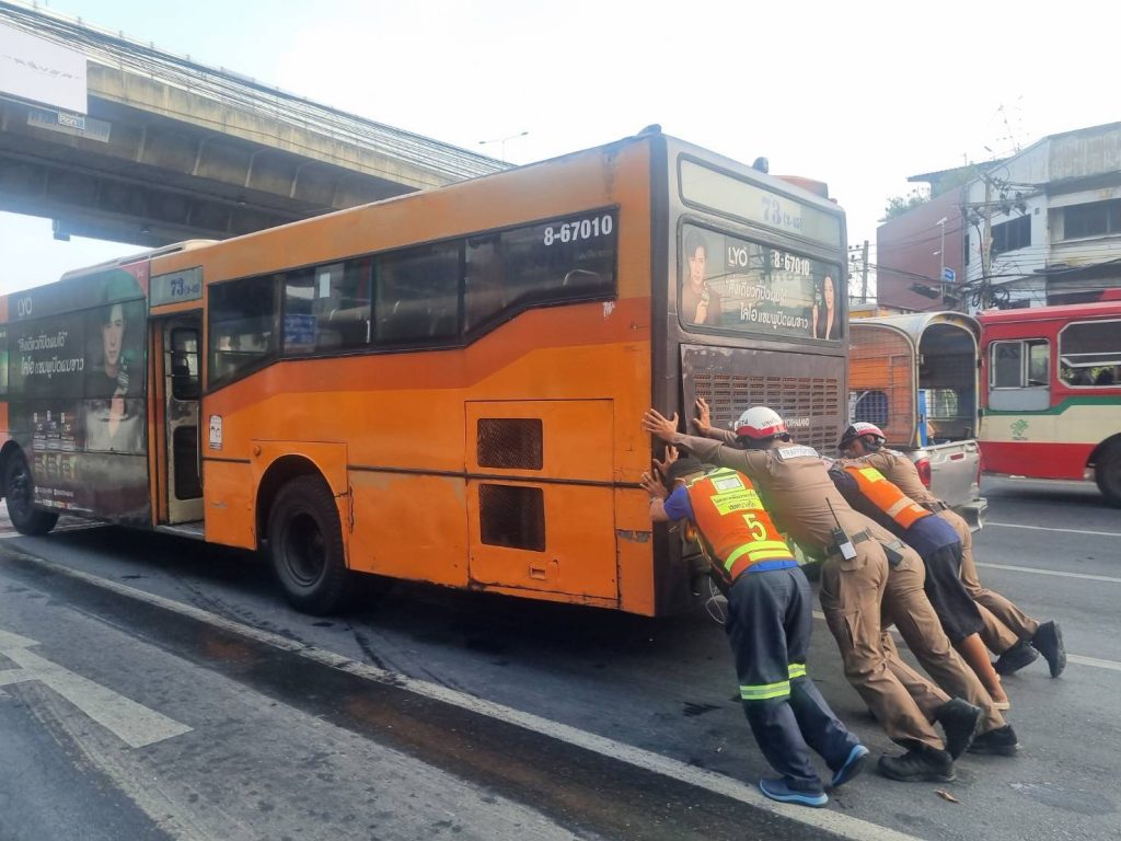 ช่วยเหลือรถประจำทาง ว.18 บริเวณถ.พระราม 4 ขาเข้าใกล้แยกมหานคร พ้นกีดขวาง
