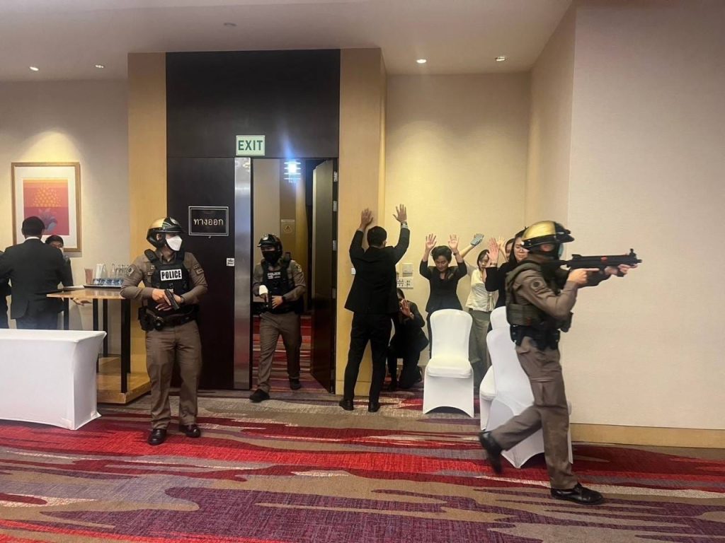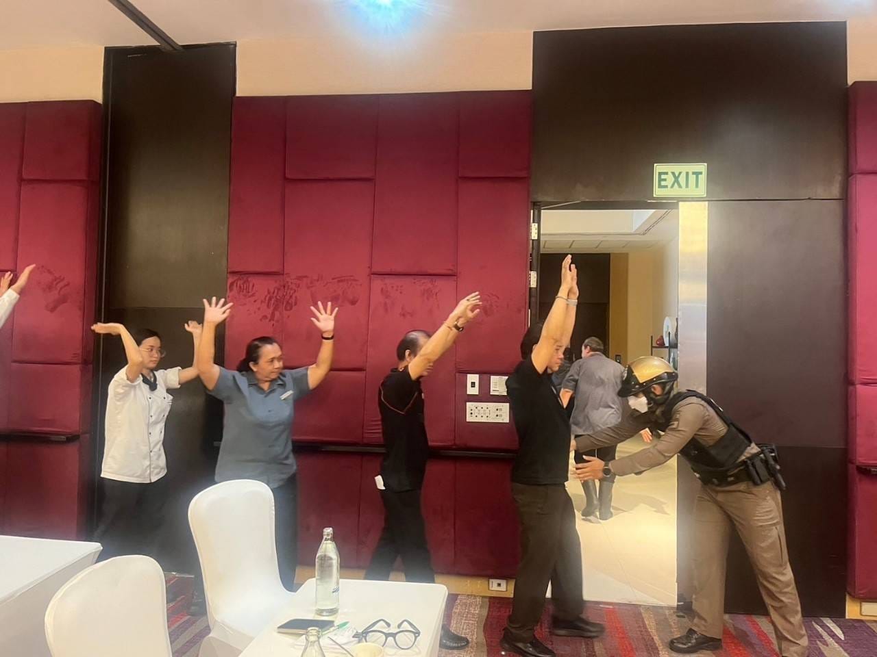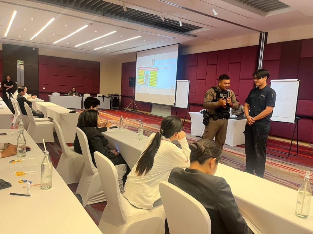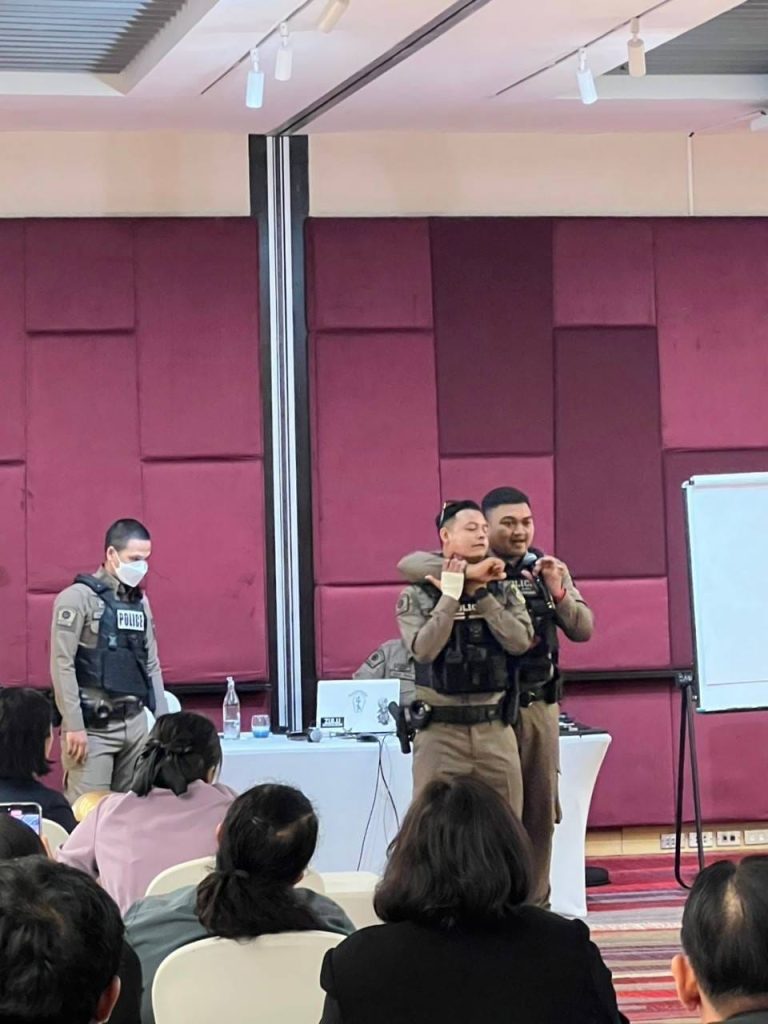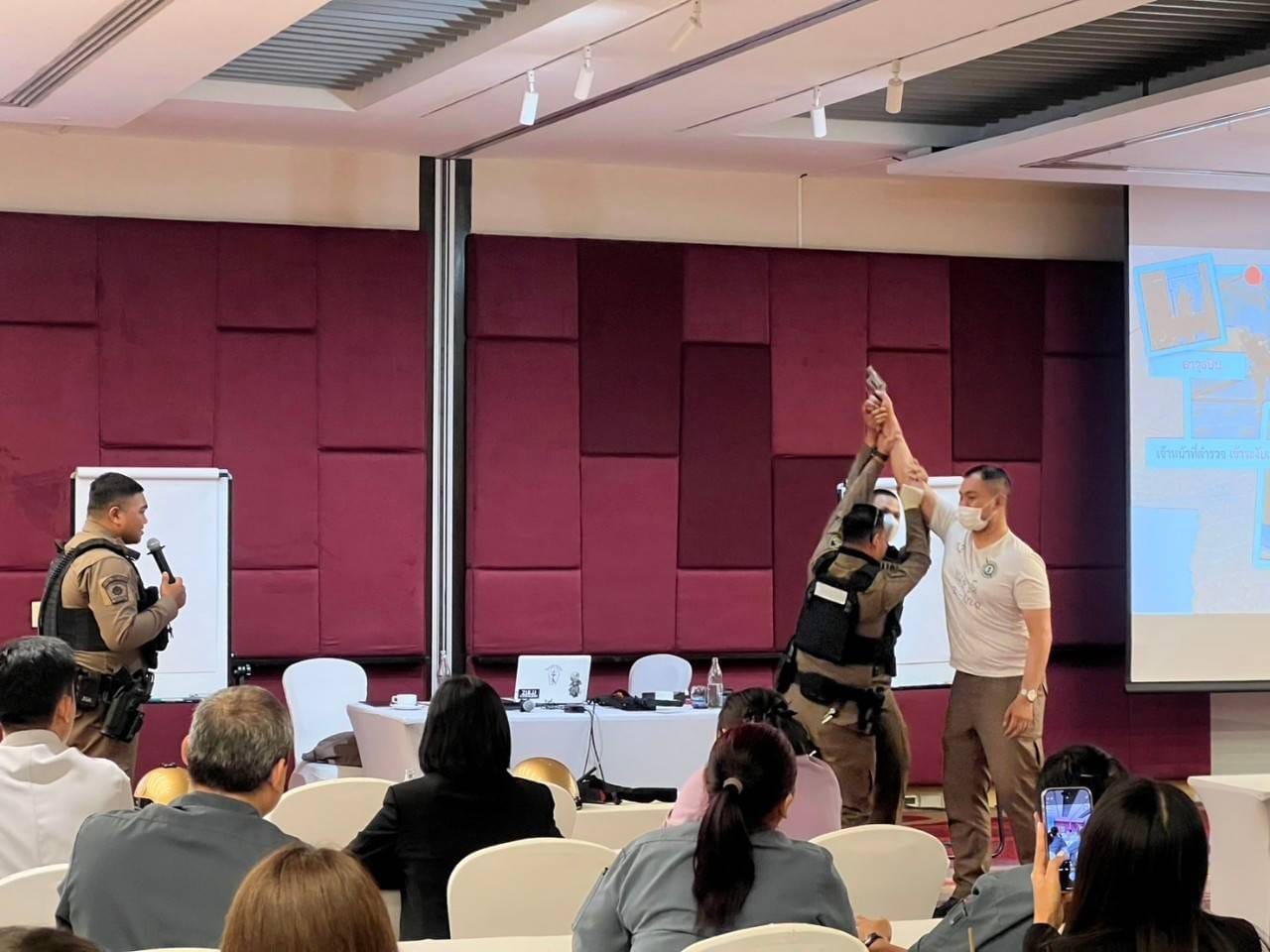 พร้อมชุดครูฝึกอบรม Active shooter บรรยายให้ความรู้ในหัวข้อ “การเอาตัวรอดจากเหตุคนร้ายใช้อาวุธในที่สาธารณะ (หนี ,ซ่อน ,สู้ Active Shooter ภาคประชาชน) และการบริหารเหตุวิกฤต สถานการณ์คนร้ายใช้อาวุธในที่สาธารณะ” แก่บุคลากร โรงแรมเซ็นทาราแกรนด์