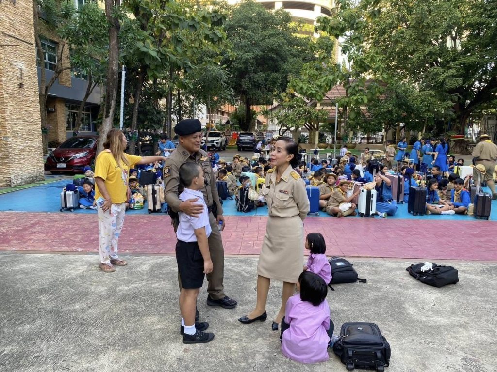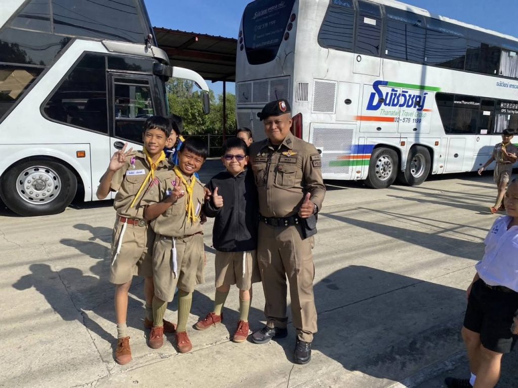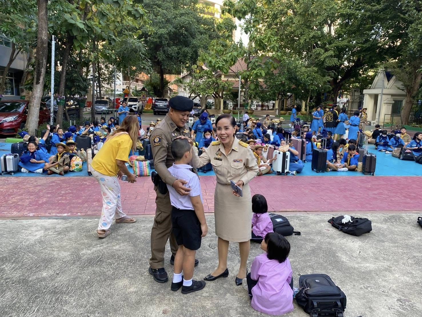 ปฏิบัติหน้าที่นำขบวนและดูแลความปลอดภัย การเข้าค่ายทัศนศึกษาของนักเรียนโรงเรียนวัดทุมวนารามฯ