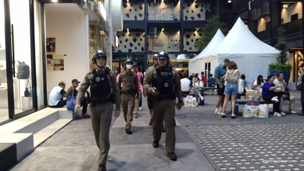 เดินเท้าป้องกันเหตุและดูแลความปลอดภัยนักท่องเที่ยว ภายในงาน walking street สยามสแควร์
